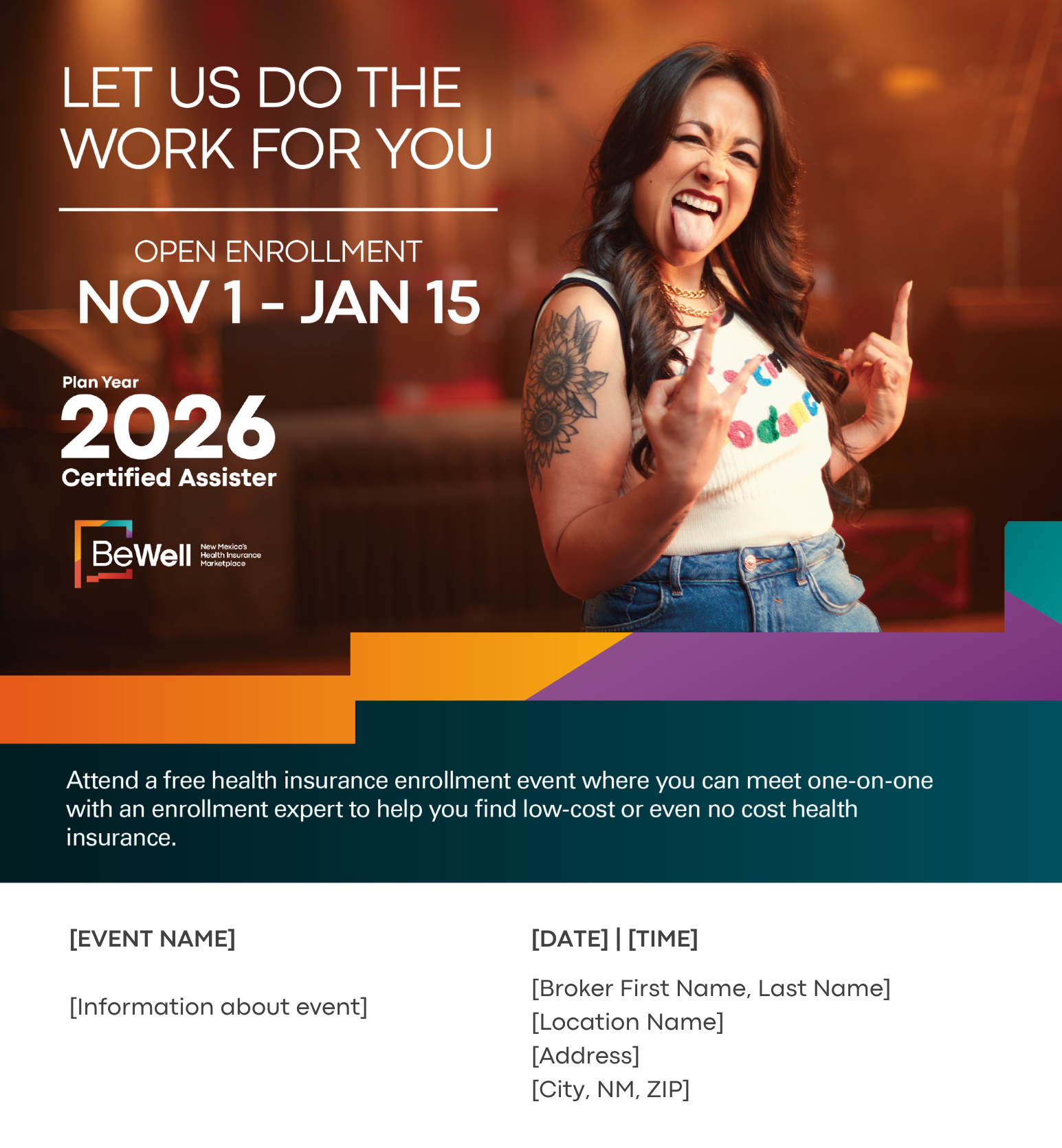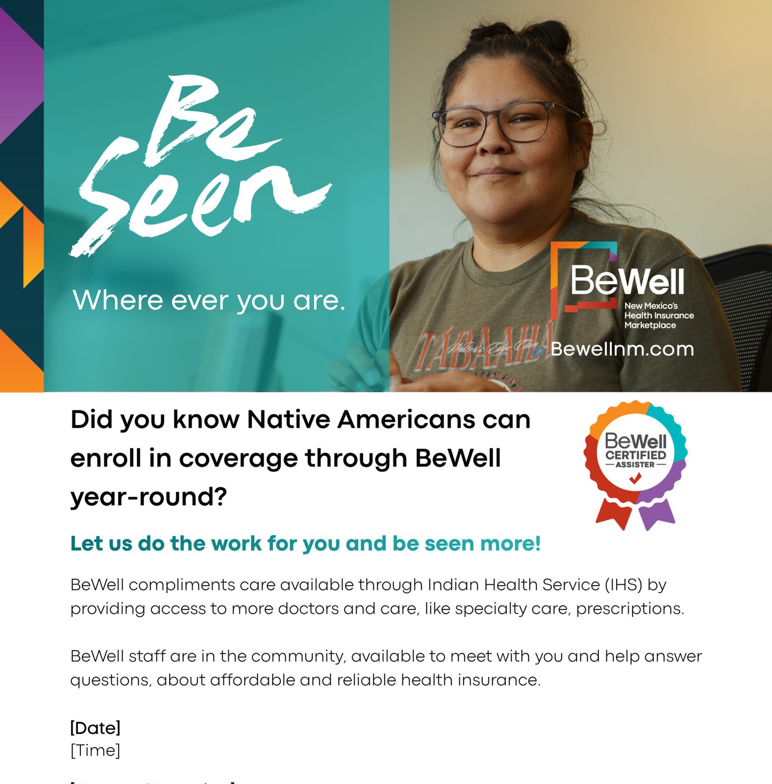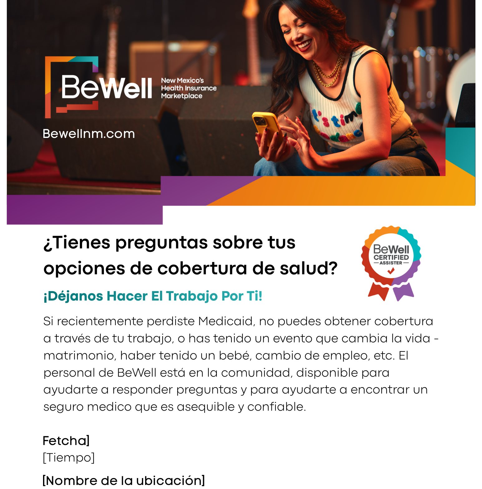 Access official BeWell flyers and rack cards to support your outreach efforts. You can download ready-to-print versions or personalize select flyers using our editable Canva templates. These templates include locked brand elements to maintain BeWell’s design, only location and event details can be edited. Please note that printing costs are the responsibility of the assister.